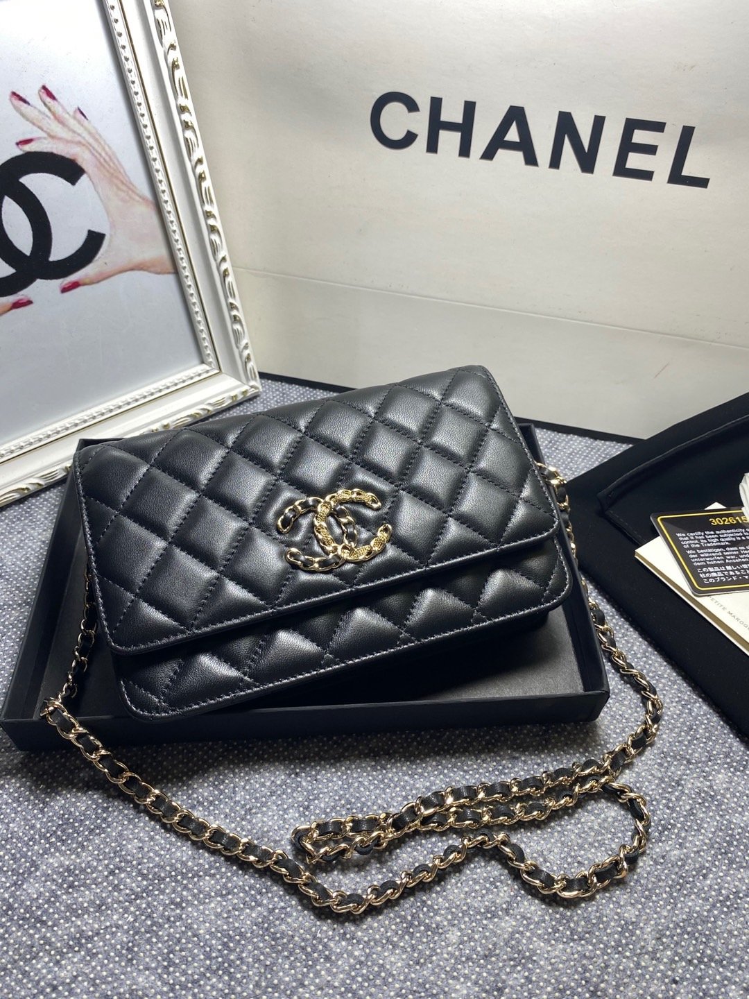 Batch 360 hot model Chane AP1794 2020 new sheepskin woc, love it so much! At first glance, you can tell that the logo is larger than the classic model. Half of it is made of leather and half of it is made of gold chain. It is very delicate. Don’t worry about the capacity. It can fit everything. The size is 19cm.