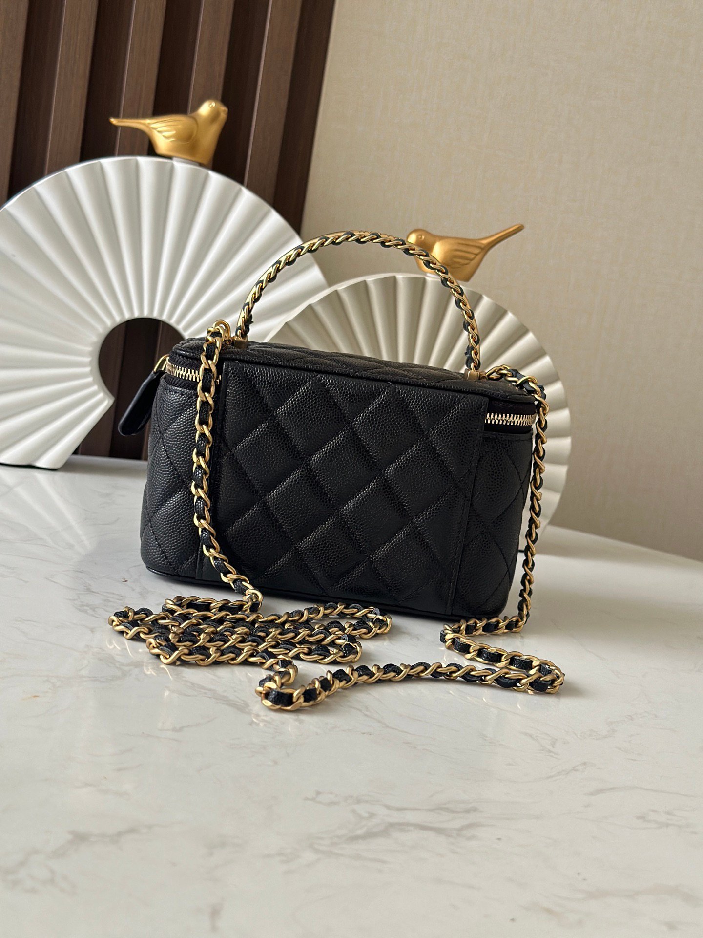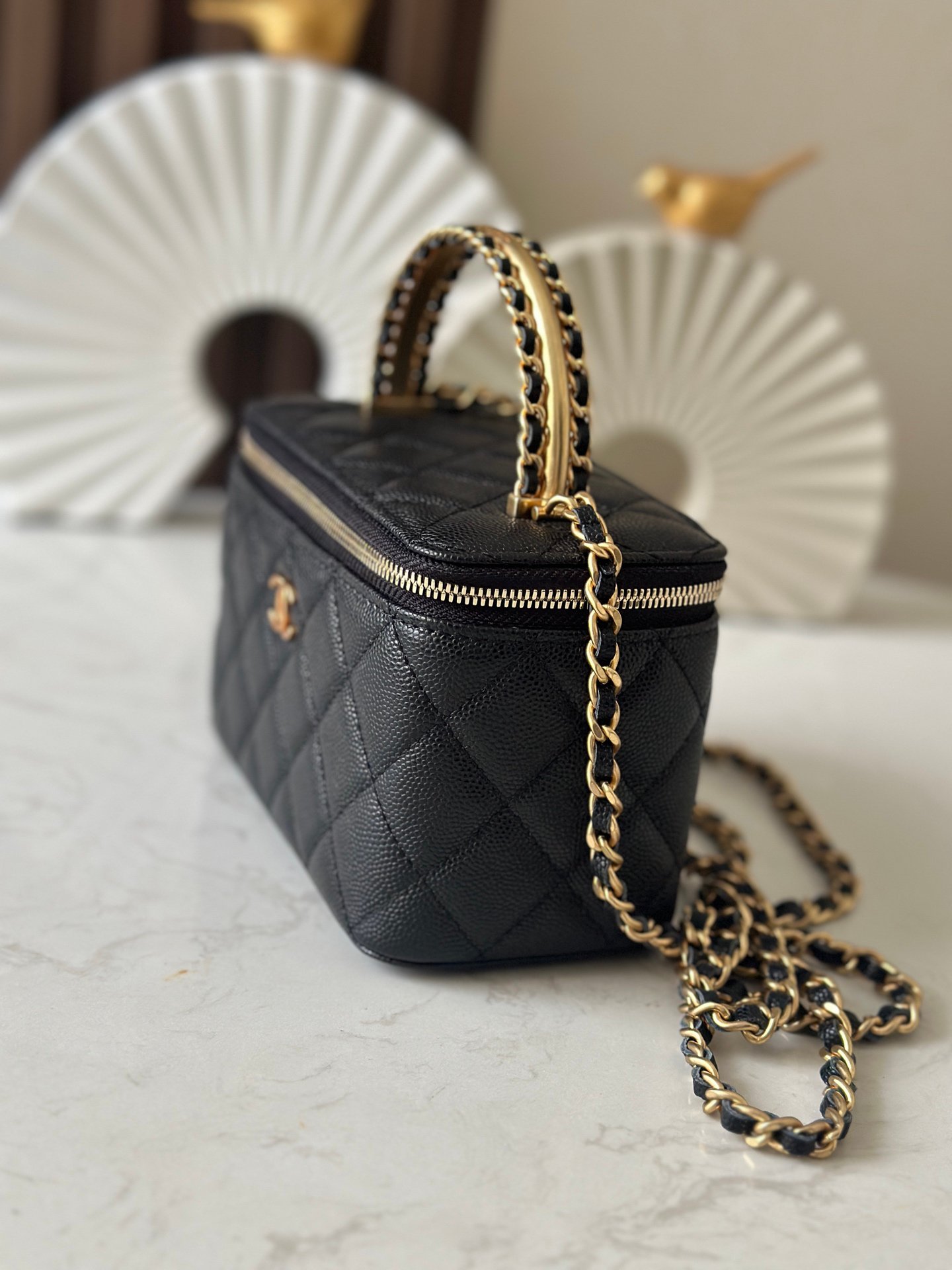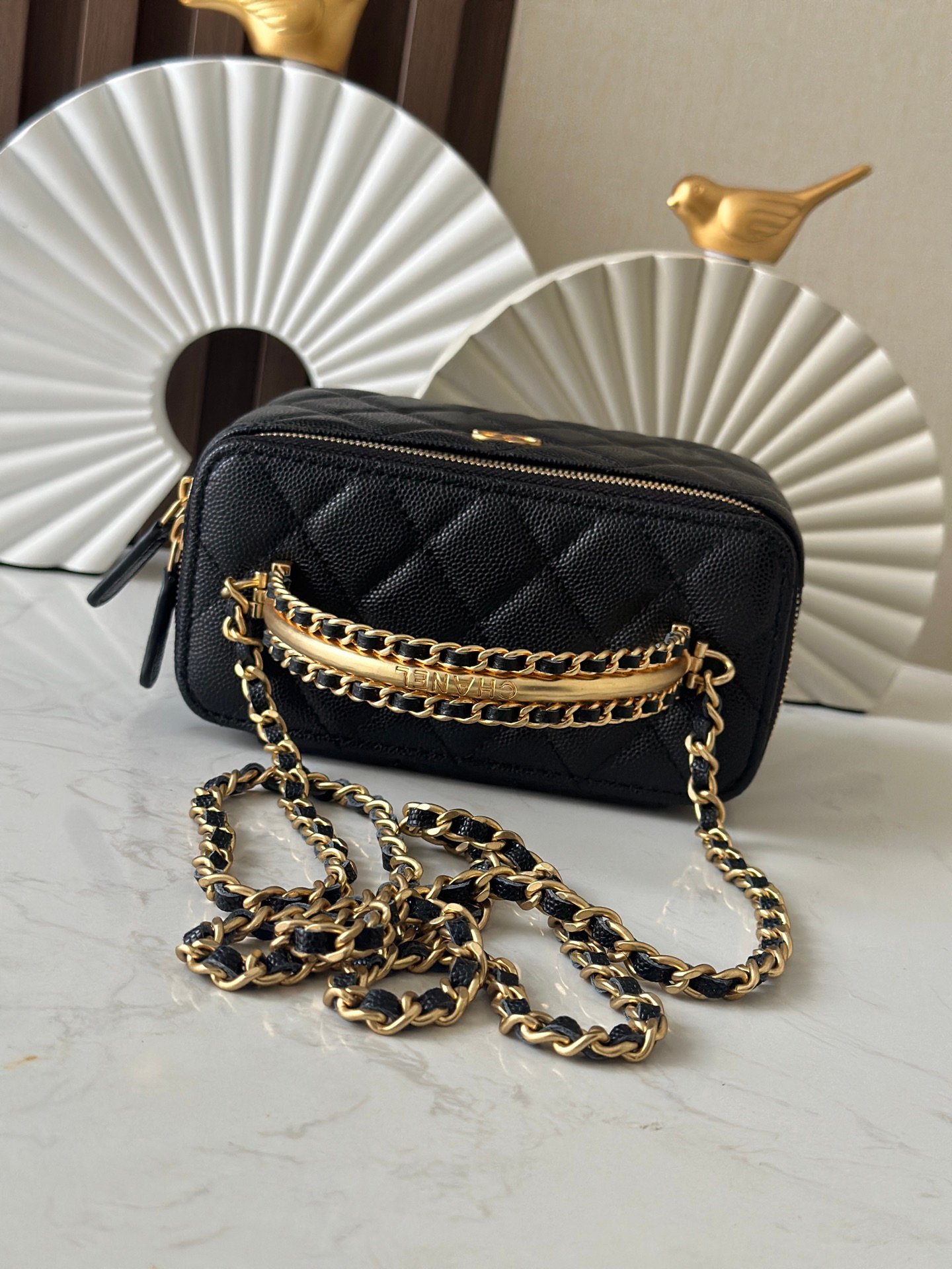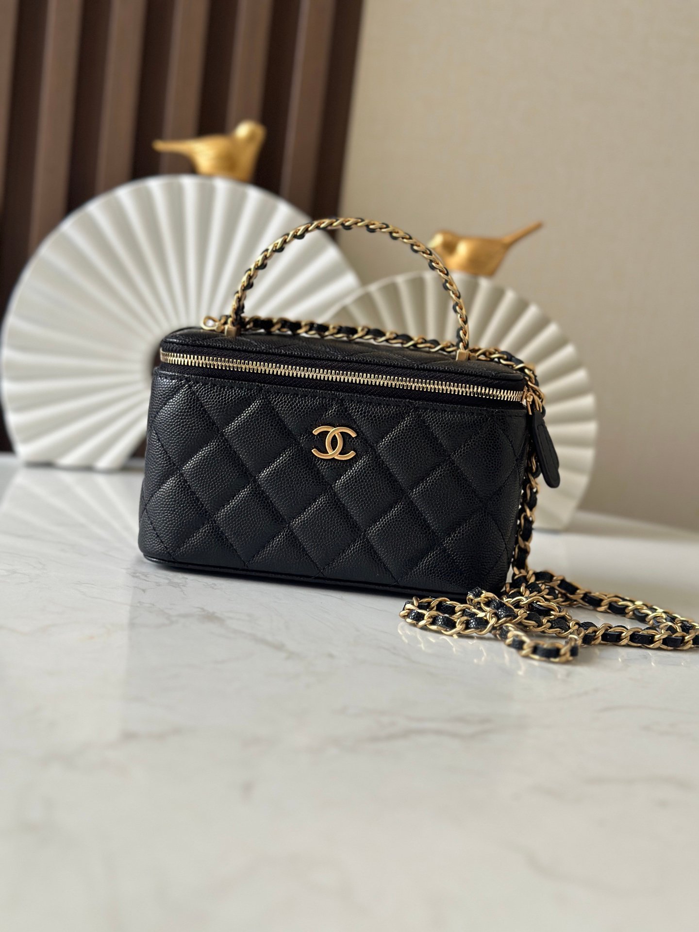 Chane10 24A cowhide metal font handle long box I feel like the long box with the handle is made of cowhide. I’m so happy this season. I never expected that the 24a long box of my dream bag is actually available. Seeing the real thing really touches my girly heart. The retro matte handle + pebbled calfskin texture instantly fills up the room. It’s simple and yet unique, so it’s versatile in all seasons. The attitude of the sa that I met was very nice. I was given several long boxes for me to take a look at and compared, and I chose my dream bag. No.: 66053 black Size 9.5×17×8cm With packaging: P570