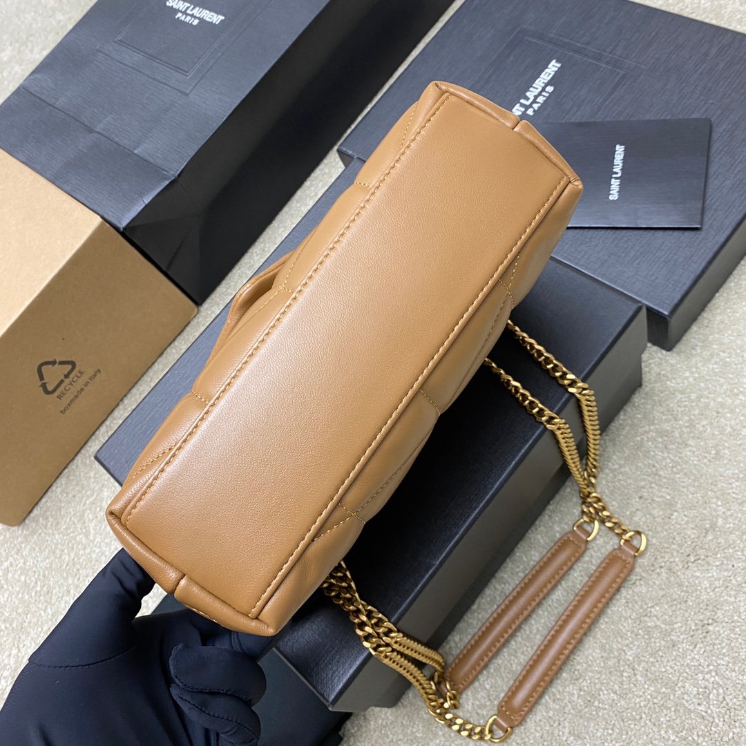 [Original leather] Batch 570🌈Exclusively for fine products🔥Caramel Sheepskin Ancient Gold 𝙇𝙤𝙪𝙇𝙤𝙪 𝙥𝙪𝙛𝙛𝙚𝙧~LOULOU PUFFER new mini double chain quilted lambskin bag, super popular style in the latest mini size! Made of original ZP leather, it feels soft and delicate, and it is as cute as a marshmallow when you take it out! There is an inner zippered pocket for storing mobile phones and valuables, and there is also a card slot for placing cards. Other than that, there are no extra inner pockets. Although the mahjong is small, it has all the essentials, so you can use it as you like👍 Model: 759337 [original leather] Size: 23×15.5×5.8cm