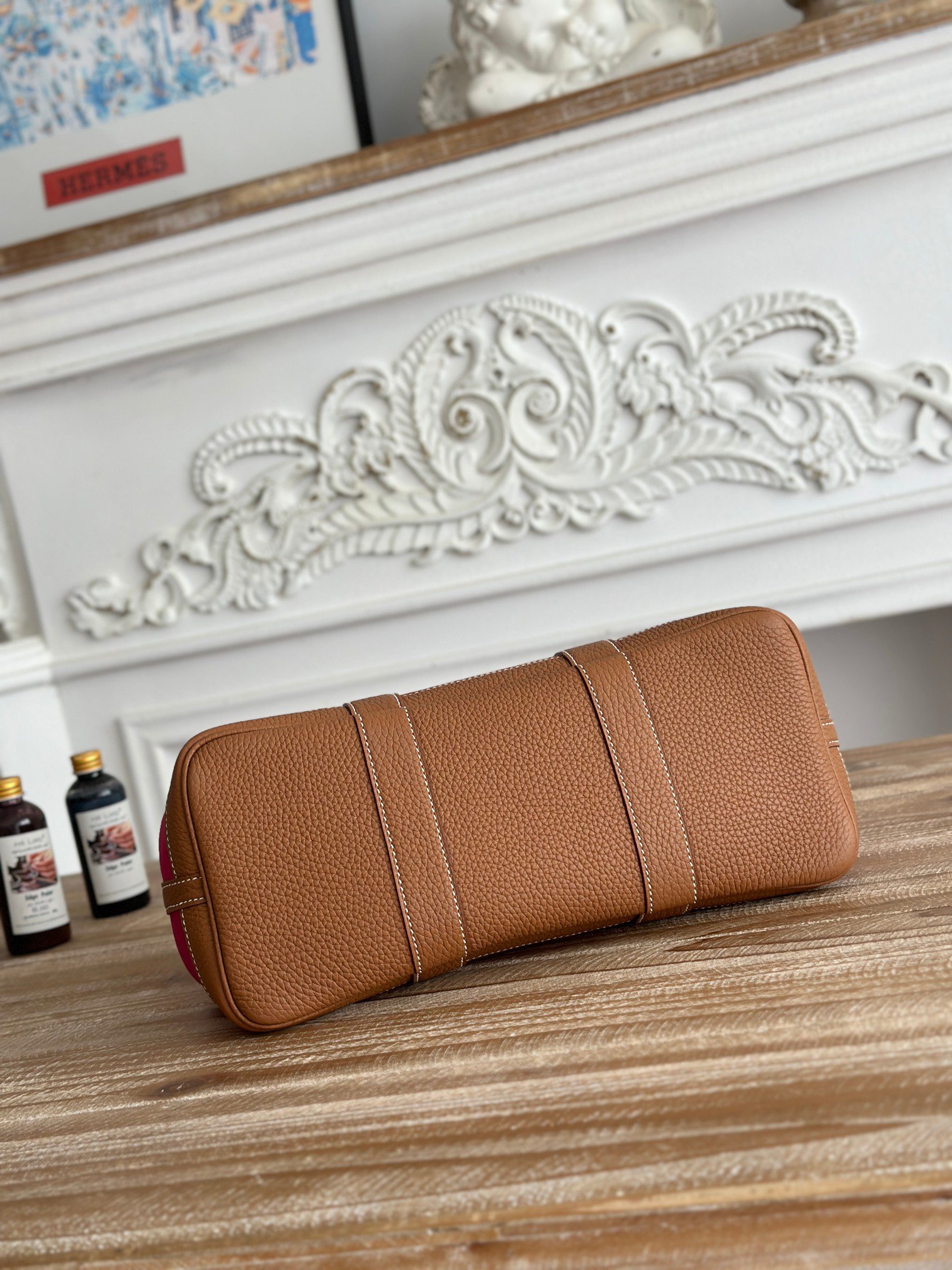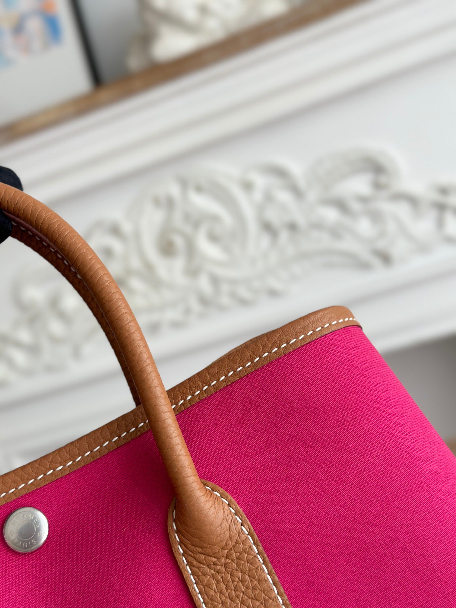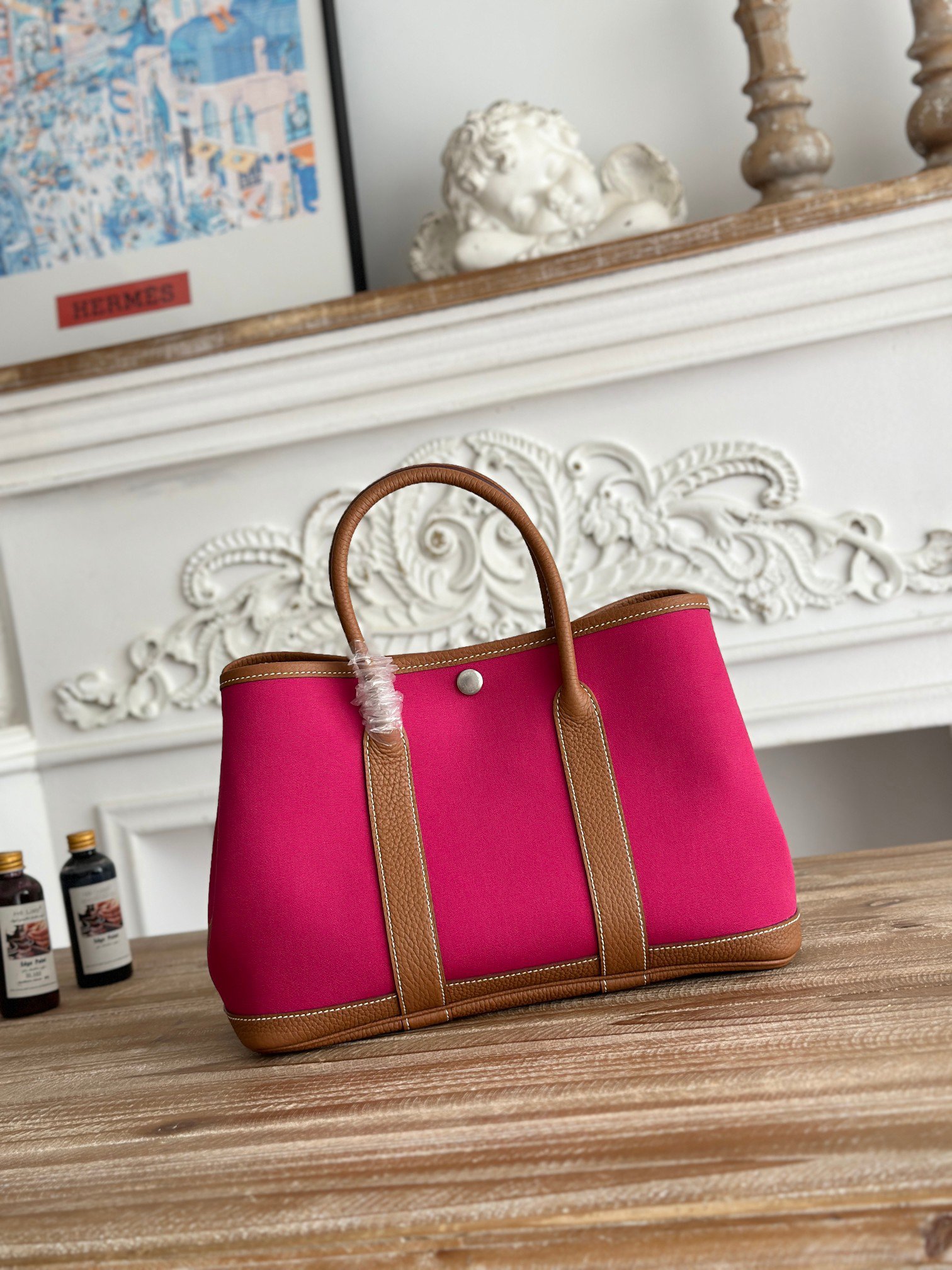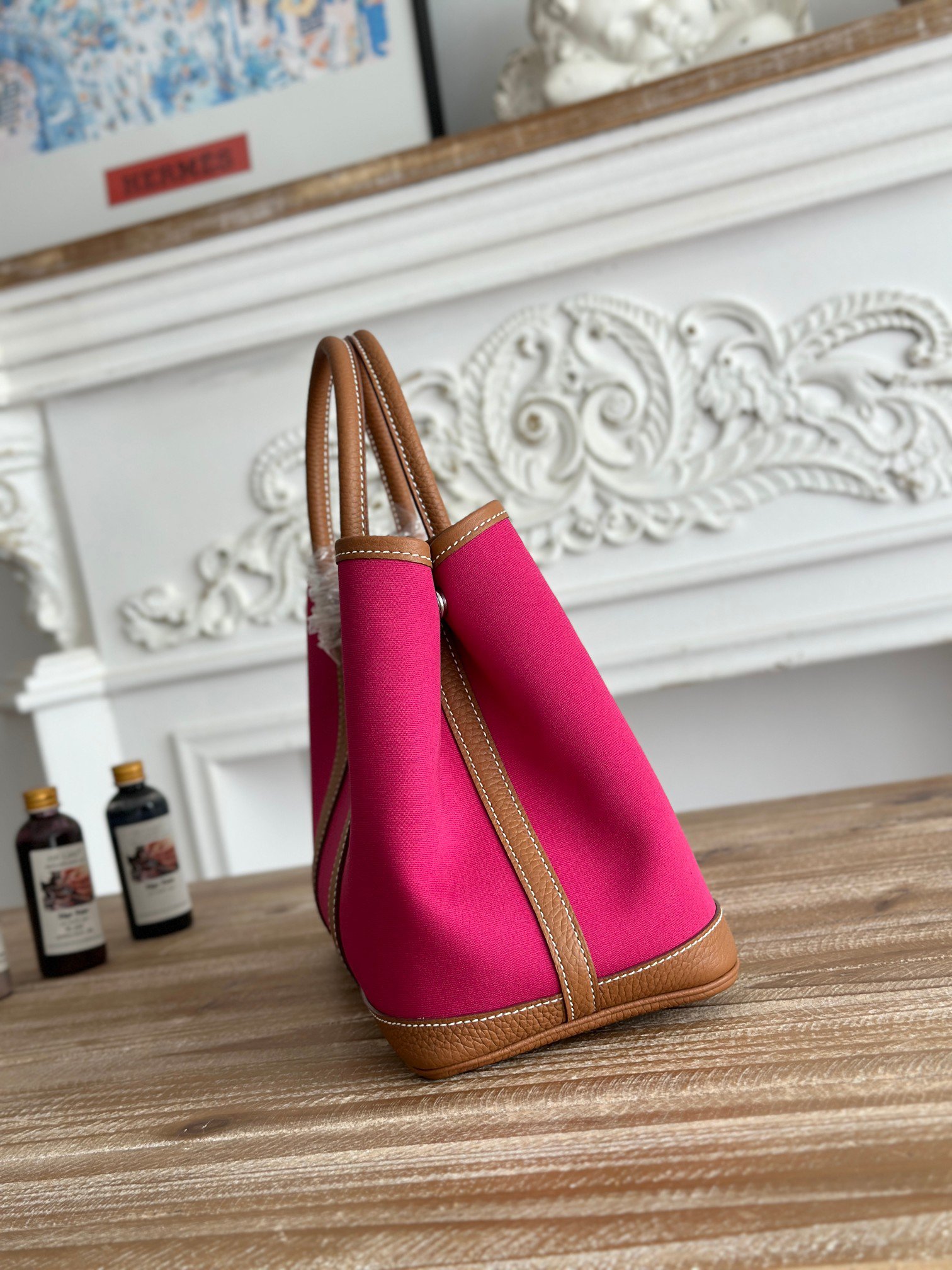 P1000 garden party garden bag Canvas Magnolia pink golden brown, the most beautiful color matching, Be self-respecting and light as a commuter or mommy bag first Integration of appearance and practicality Size: 30cm