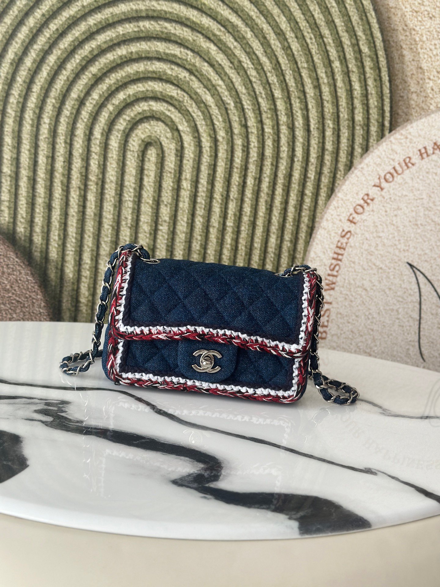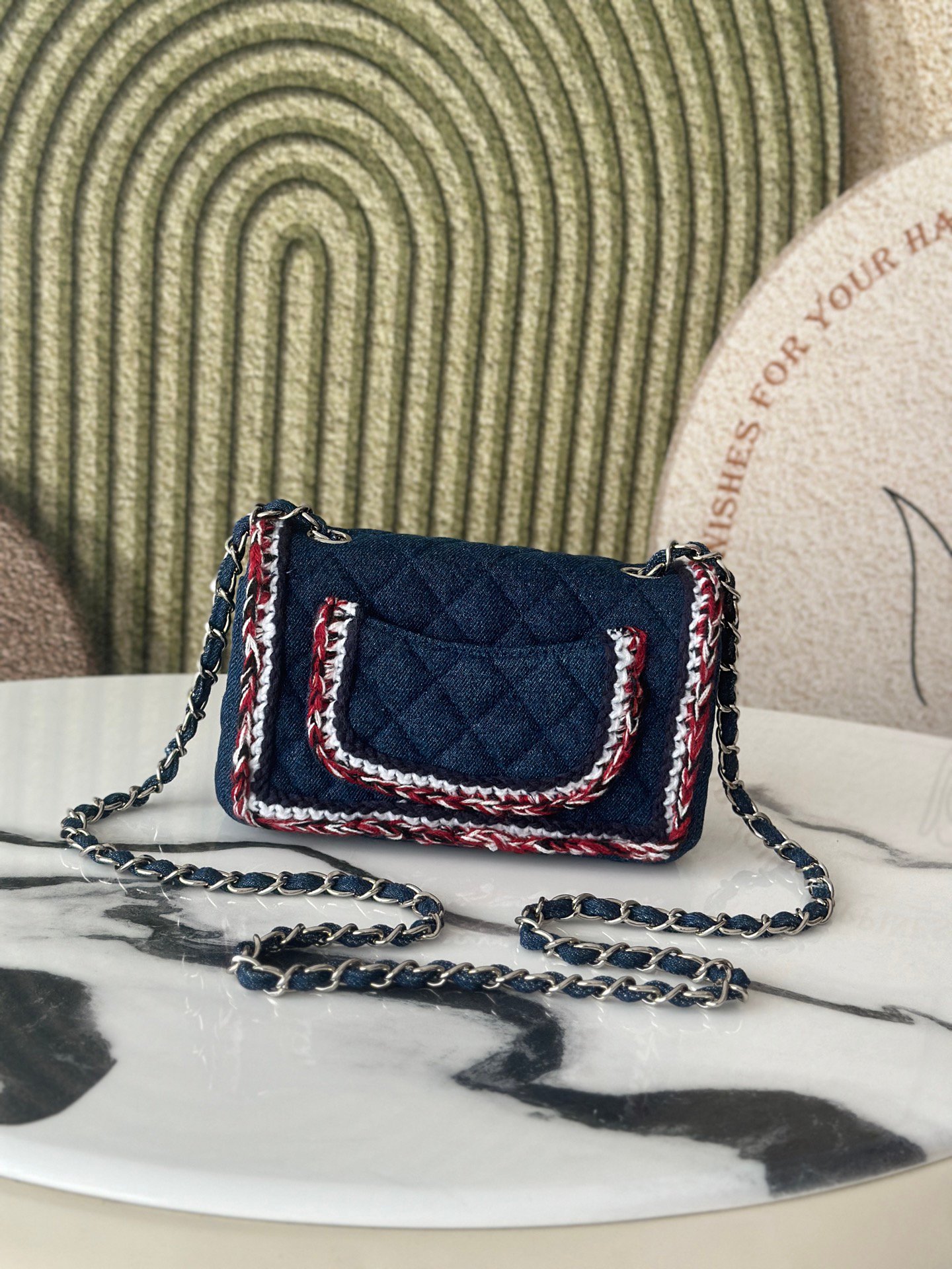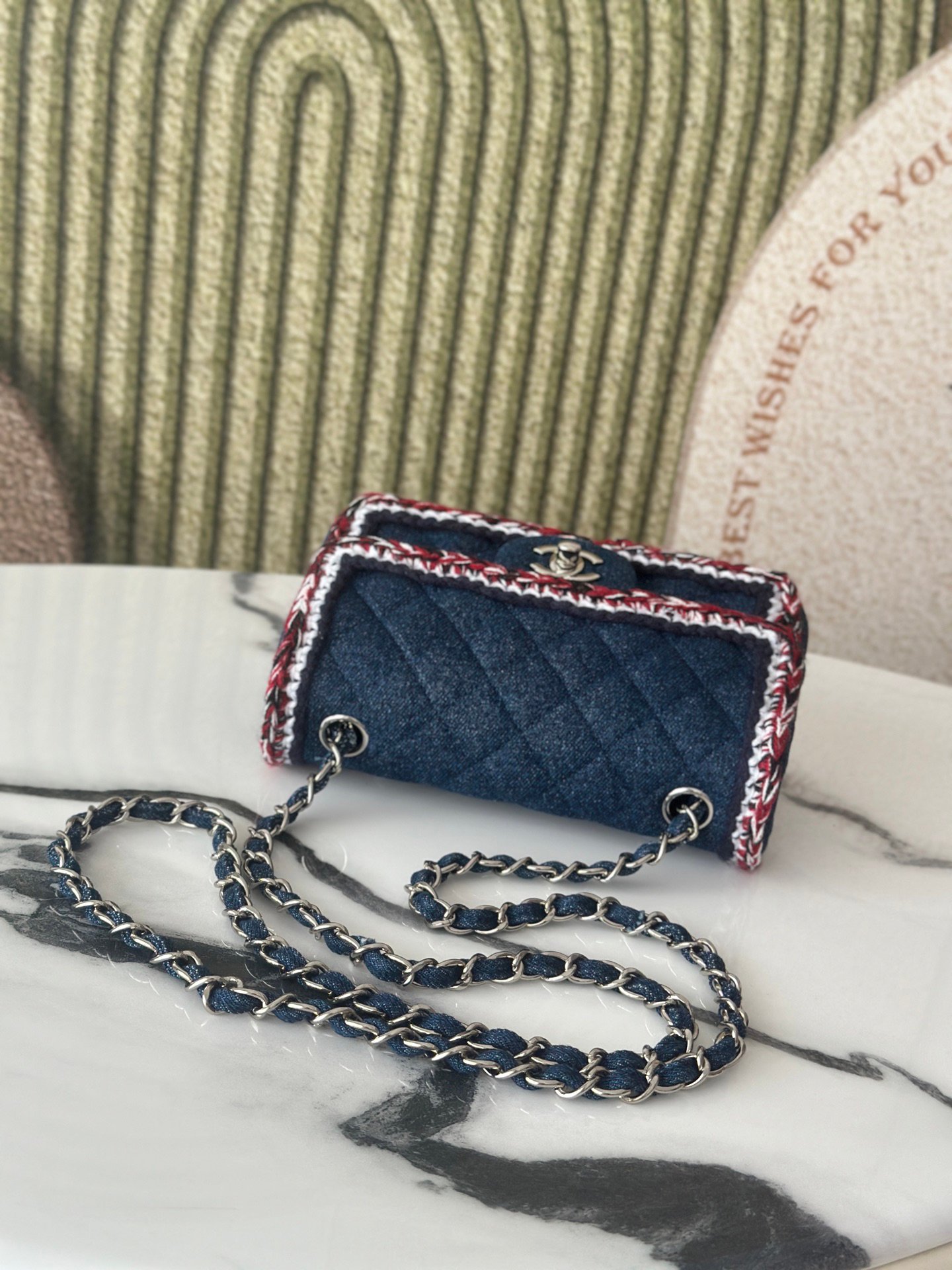p1000 Chanel vintage middle-aged limited edition dark blue denim ribbon small size 20cm✔️ Classic and timeless – denim 💙