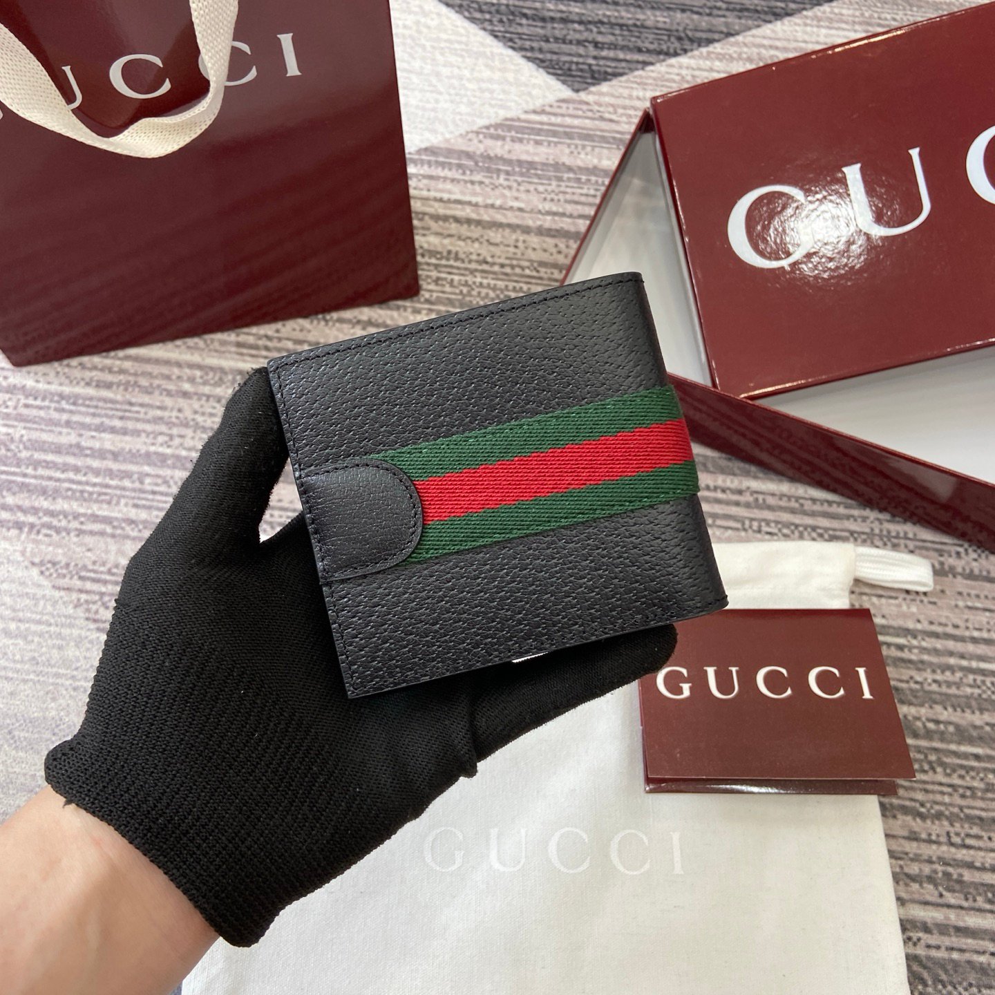 p180. [With complete packaging]‼ ️The Ophidia series combines two colors of beige and ancola red, with classic silhouettes and new functions, and is made of soft-touch fabrics. This bifold wallet is crafted from coated fabric with a GG monogram pattern and is expertly embellished with the Double G logo and web details.