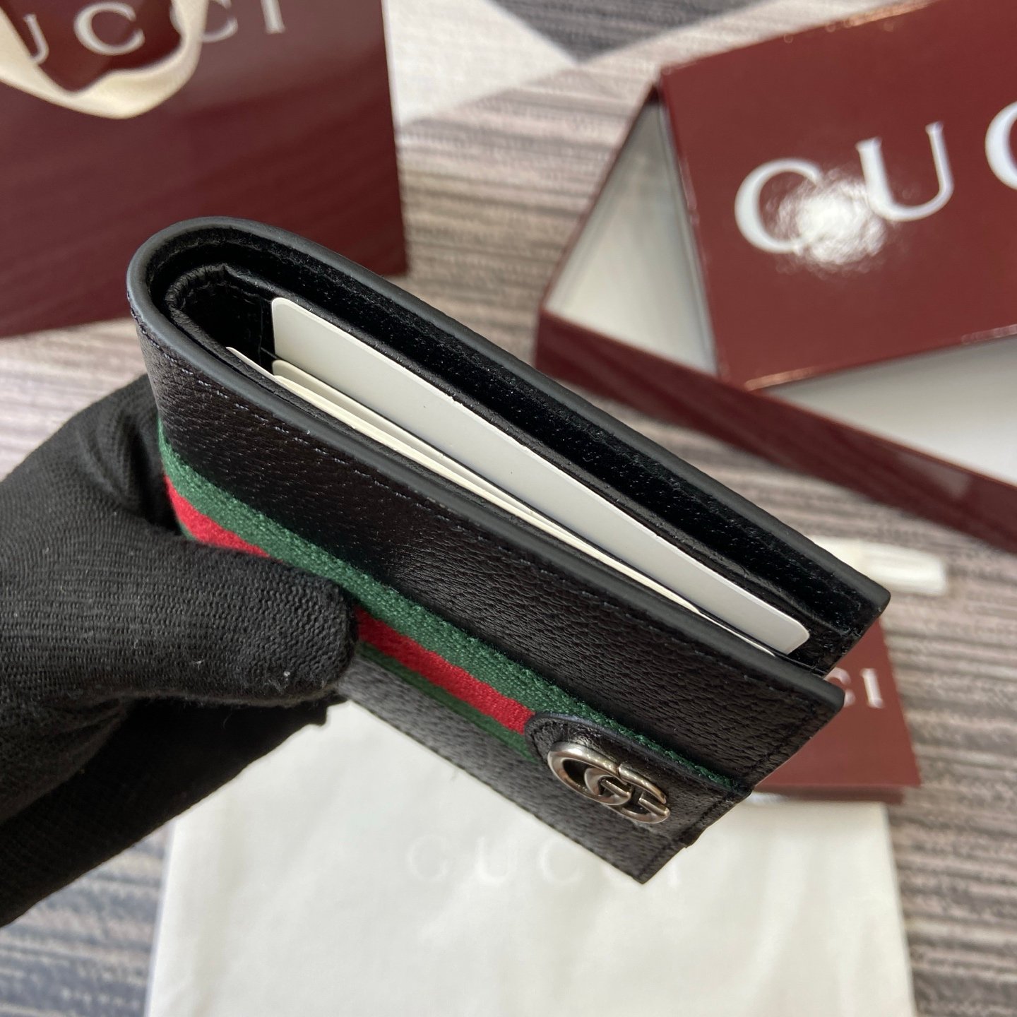 ![p180. [With complete packaging]‼ ️The Ophidia series combines two colors of beige and ancola red, with classic silhouettes and new functions, and is made of soft-touch fabrics. This bifold wallet is crafted from coated fabric with a GG monogram pattern and is expertly embellished with the Double G logo and web details.