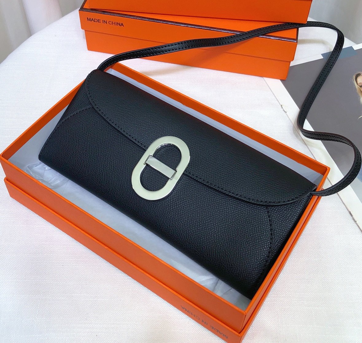 P300 Emmajia Ancre To Go palm print EP leather #silver buckle black🔙 # dignified, elegant, classic and versatile~ Perfect for daily outings or dinner parties🎉 Dimensions: length 24*width 4*height 10.5