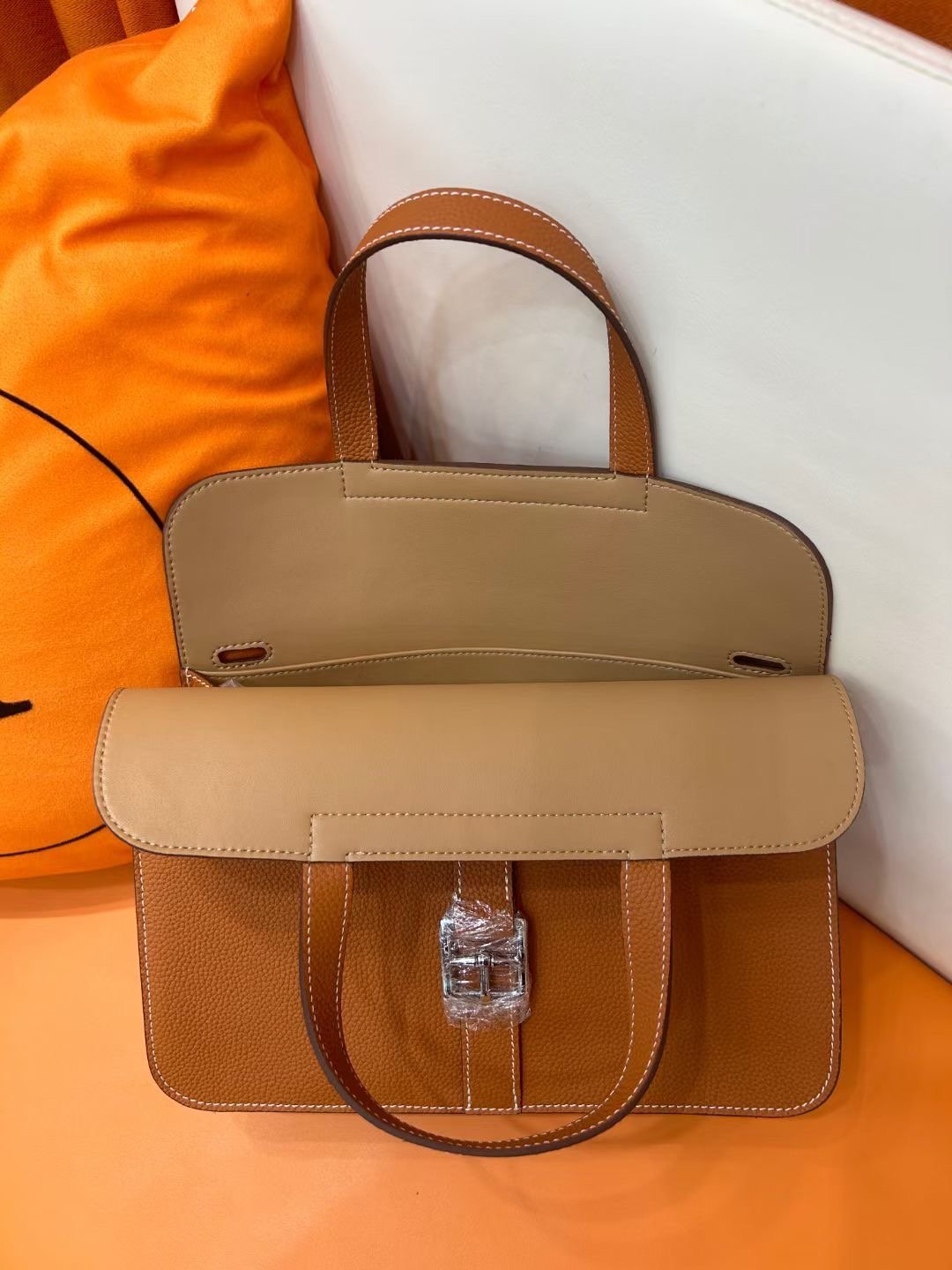 P420 Love Horse H🐴 Halazan (horseshoe buns) 31cm, golden brown biscuit color, shipped First-layer cowhide Togo leather, classic and simple style! Durable and of great quality👍🏻