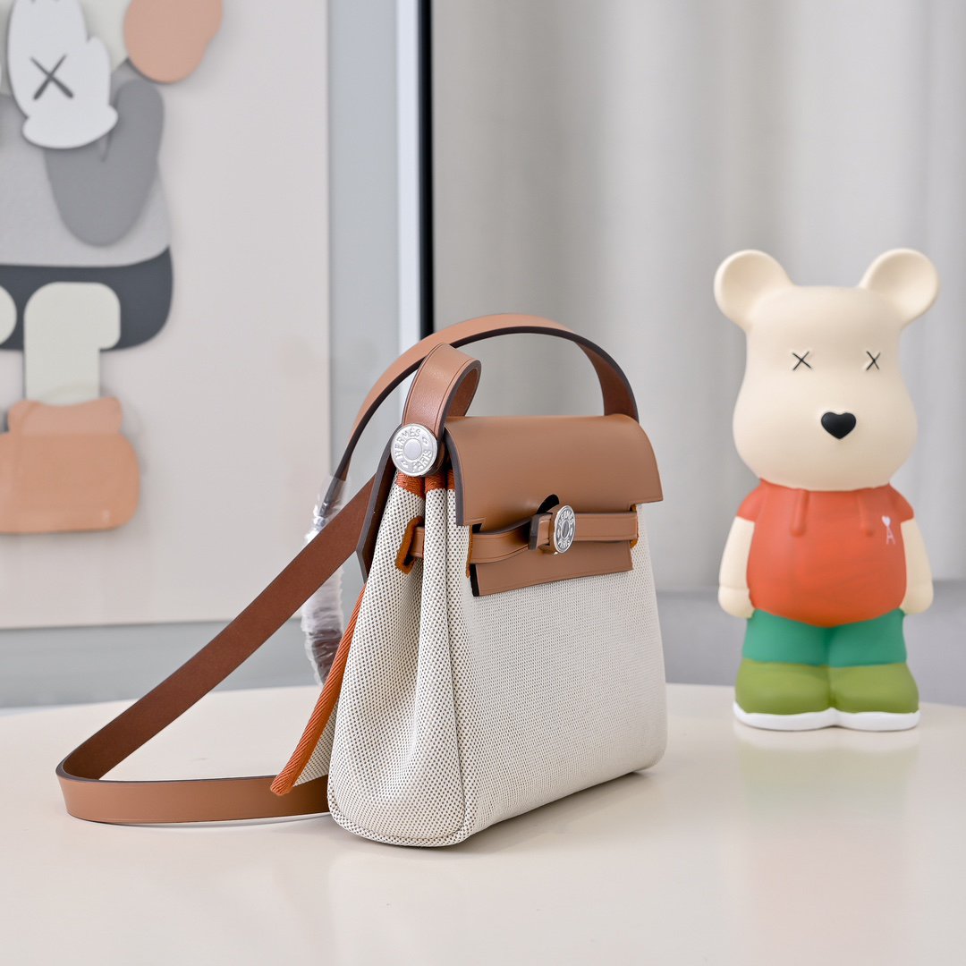 P430 🐎New products in stock🆕 Mini Herbag Kelly mini cloth bag 20cm leather patchwork silver buckle super Q Limited Edition Sync