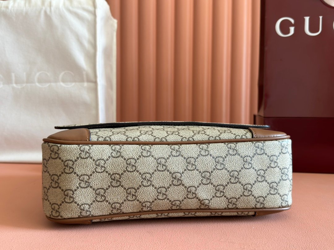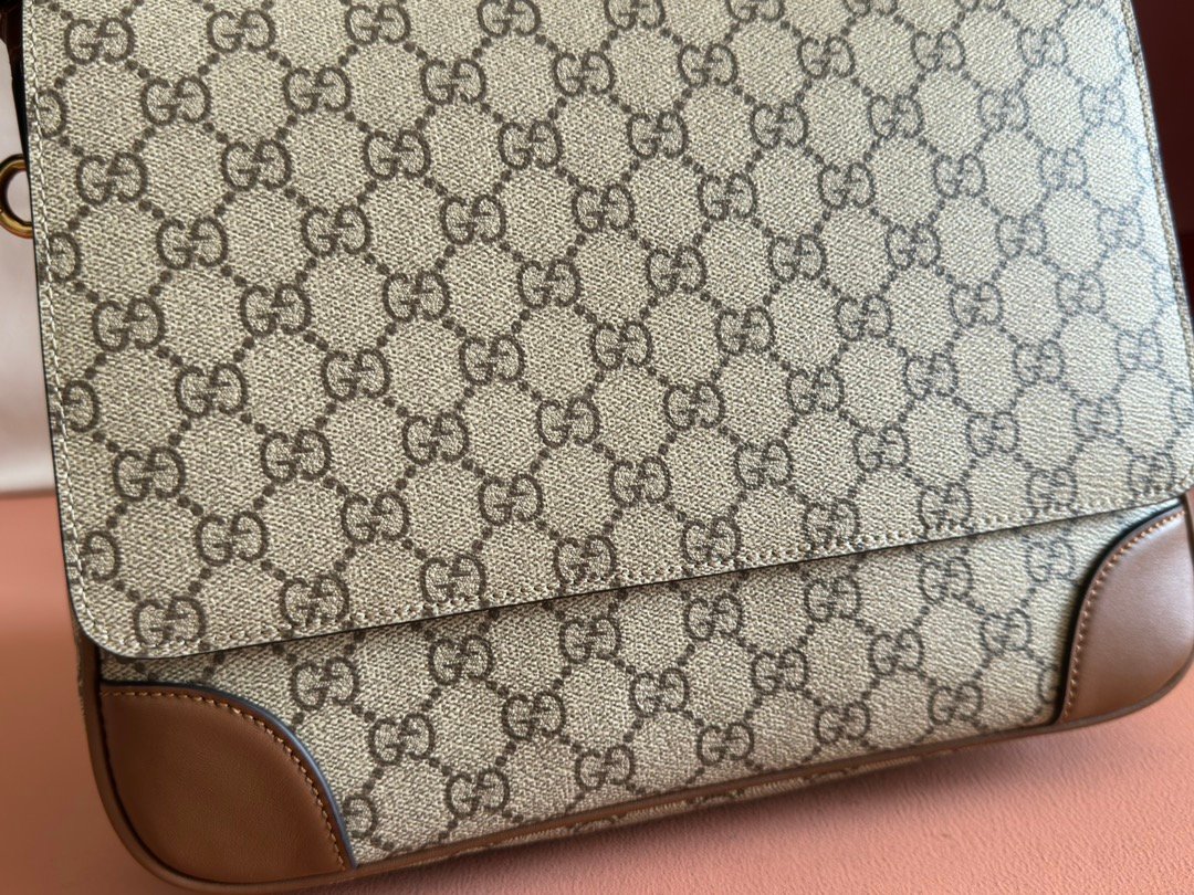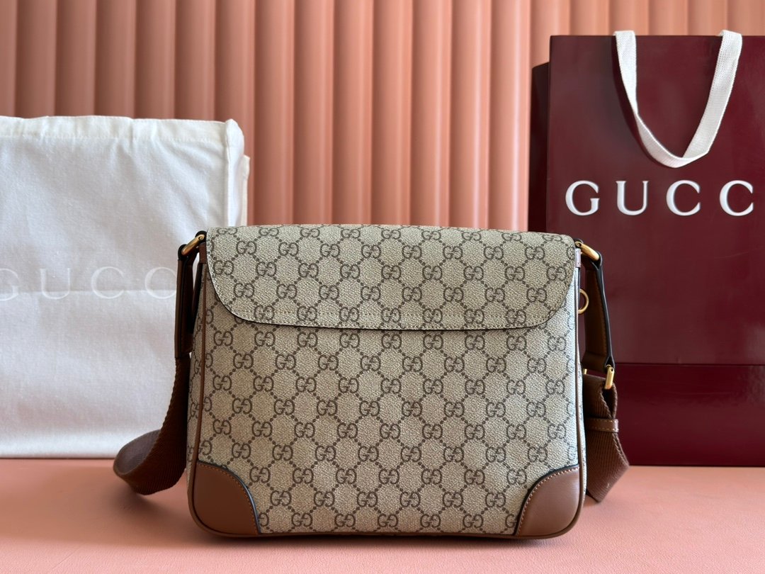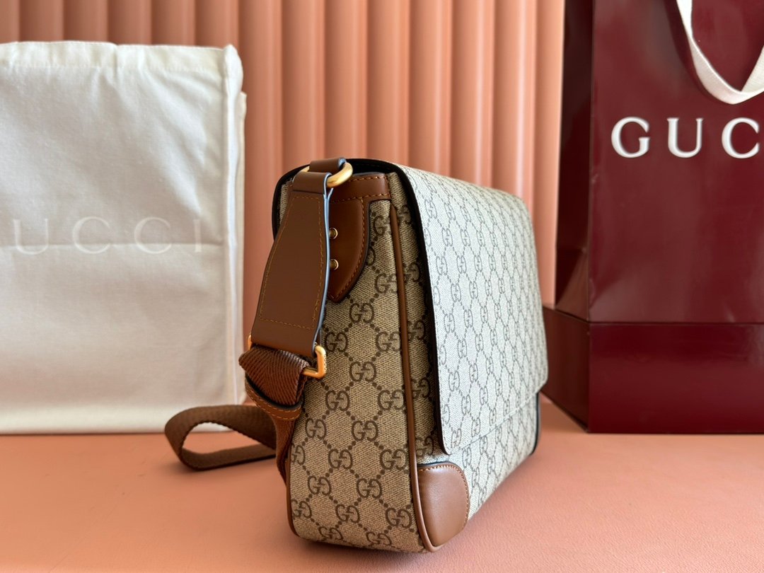 p540. 💋💋💋【With complete packaging】The new GG Emblem series of men’s travel items reinterpret the brand’s timeless elegance and exquisite craftsmanship. This cross-body bag is crafted from new brown GG monogram coated fabric and features an interior zip pocket and adjustable shoulder strap. Brown new GG monogram coated fabric Brown leather trim Cotton lining Interior: 1 zipper pocket Adjustable canvas shoulder strap (57cm height); length adjustable from 80cm to 136cm Flip closure Model: 821154. Dimensions: 29cm (width) x 23cm (height) x 7.5cm (depth) Weight: about 0.85kg Color: Brown original PVC leather. Made in Italy