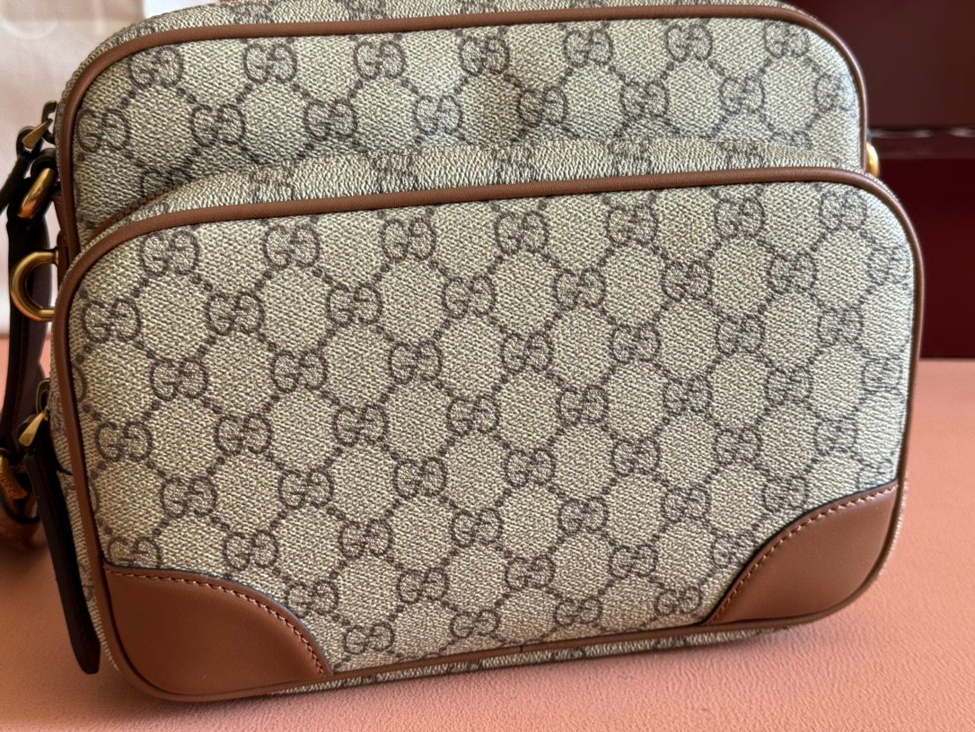 p540. 💋💋💋[Combined with complete packaging] The new GG Emblem series of men’s travel items reinterpret the brand’s timeless elegance and exquisite craftsmanship. Crafted from new beige and black GG monogram coated fabric, this crossbody bag features an interior zip pocket and an external D-ring for hanging accessories. New GG monogram coated fabric in beige and black Black leather trim Cotton lining Interior: 1 zipper pocket External: 1 front zipper and 1 D-ring Canvas shoulder strap height 56 cm; strap length adjustable from 83 cm to 142 cm Zipper closure Model: 821160. Dimensions: 23.5cm (width) x 18cm (height) x 8cm (depth) Weight: about 0.67 grams Color: original pvc leather. Made in Italy