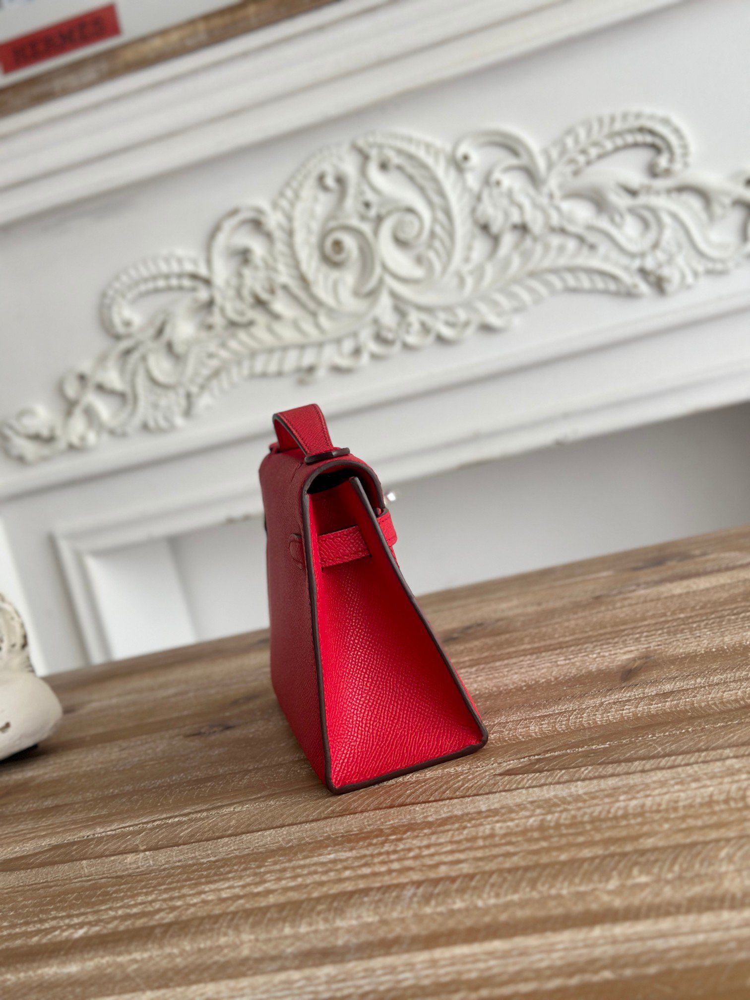 P600 exclusive background factory shooting, source of goods Commonly known as kelly Kelly mini handbag Color: bright red, silver buckle hermes kelly mini pouchette The most classic leather imported epsom leather Semi-handmade, beeswax stitching Size: 22cm