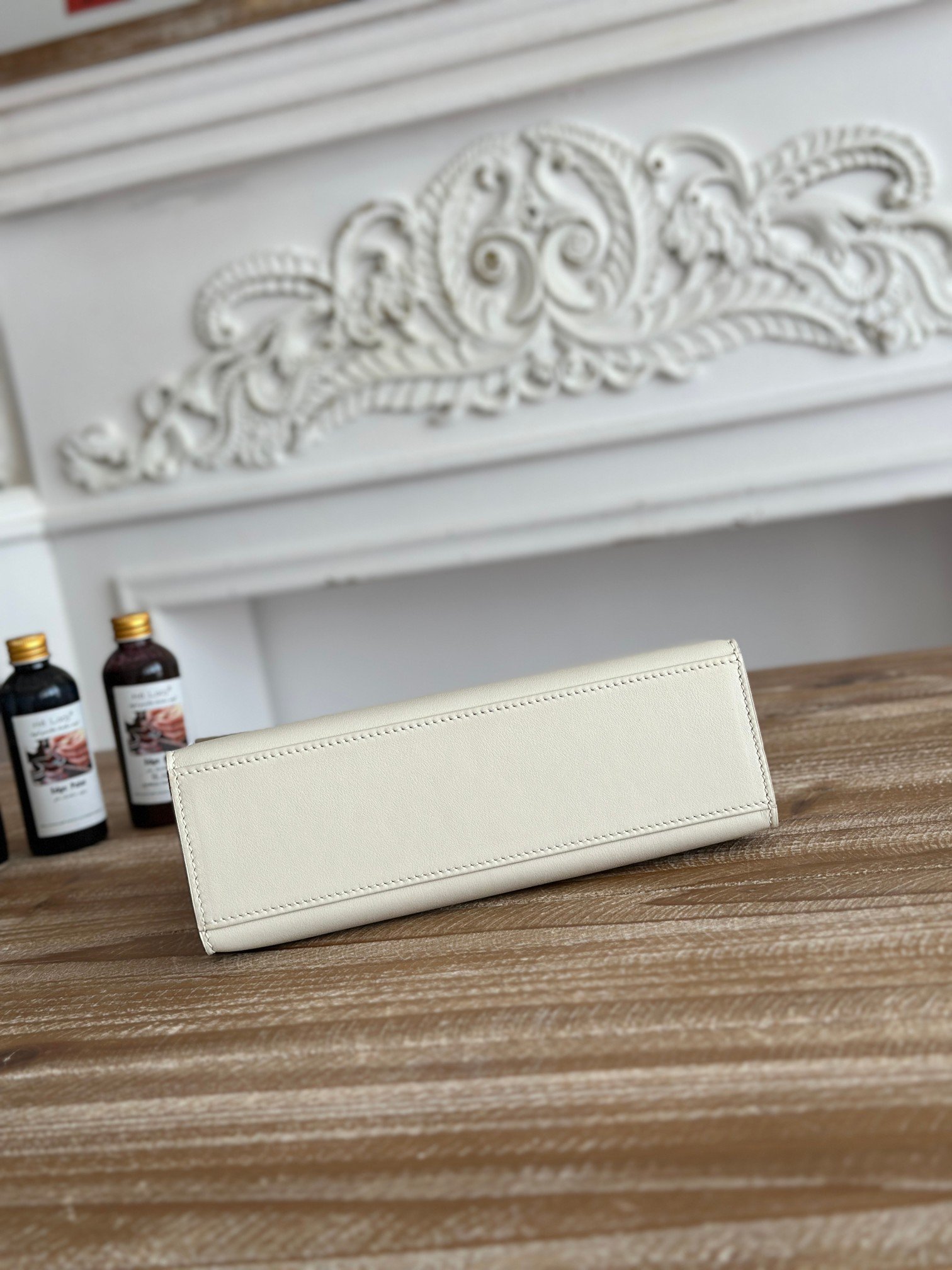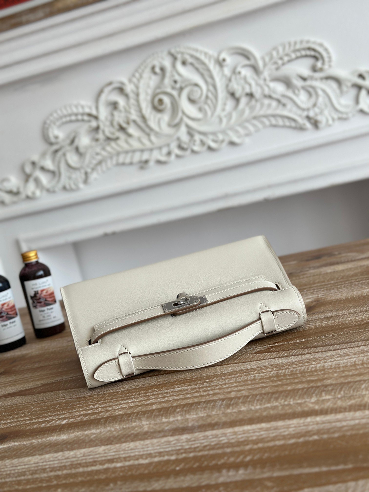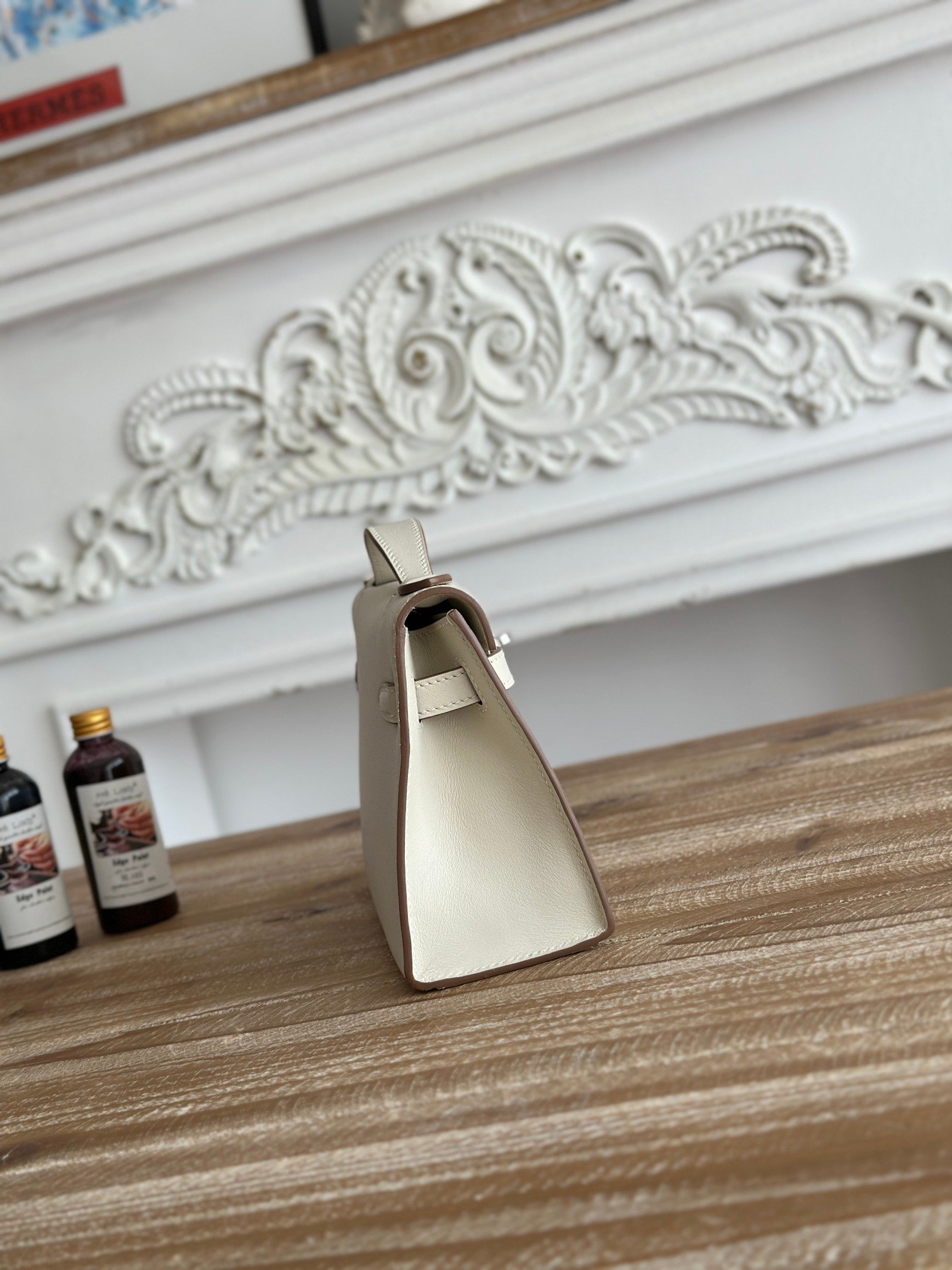 P650 exclusive background factory shooting, source of goods Commonly known as kelly Kelly mini handbag hermes kelly mini pouchette The most classic leather imported epsom leather Semi-handmade, beeswax stitched swift leather Color: milkshake white, silver buckle Size: 22cm