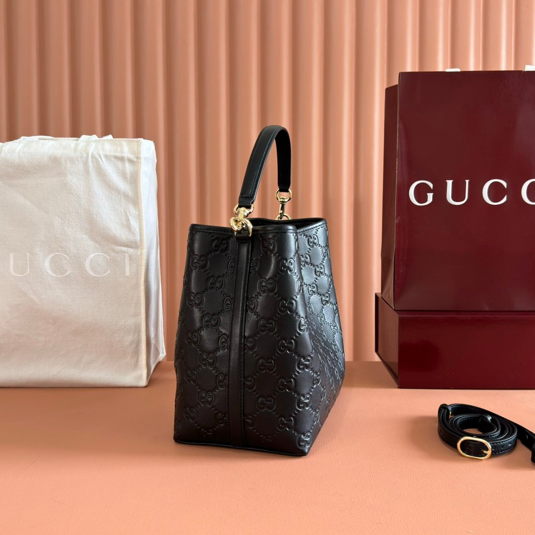 p660. 💋💋💋Original leather with complete packaging [New product] GG Emblem series reinterprets the brand’s timeless elegance and exquisite craftsmanship. Lined in webbed cotton, this bucket bag features an internal compartment for added functionality. Black GG printed embossed leather light gold tone accessories Black cotton and linen-blend lining Top handle with hook closure (height: 18 cm) Also comes with D-rings for hanging removable items Interior: two compartments and a central snap compartment Removable and adjustable leather shoulder strap (height: 54cm – 60cm; length: 105cm – 115cm) Magnetic snap closure Weight: approx. 700 grams. Model: 815103. Dimensions: 25cm (width) x 25cm (height) x 15.5cm (depth) Color: Black embossed original leather. Made in Italy