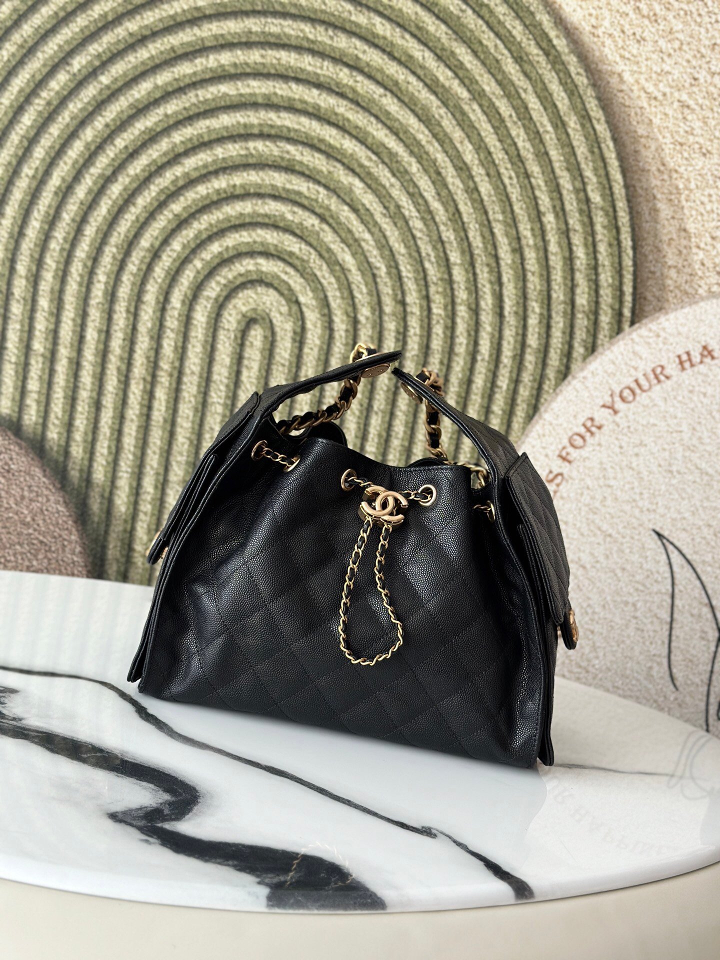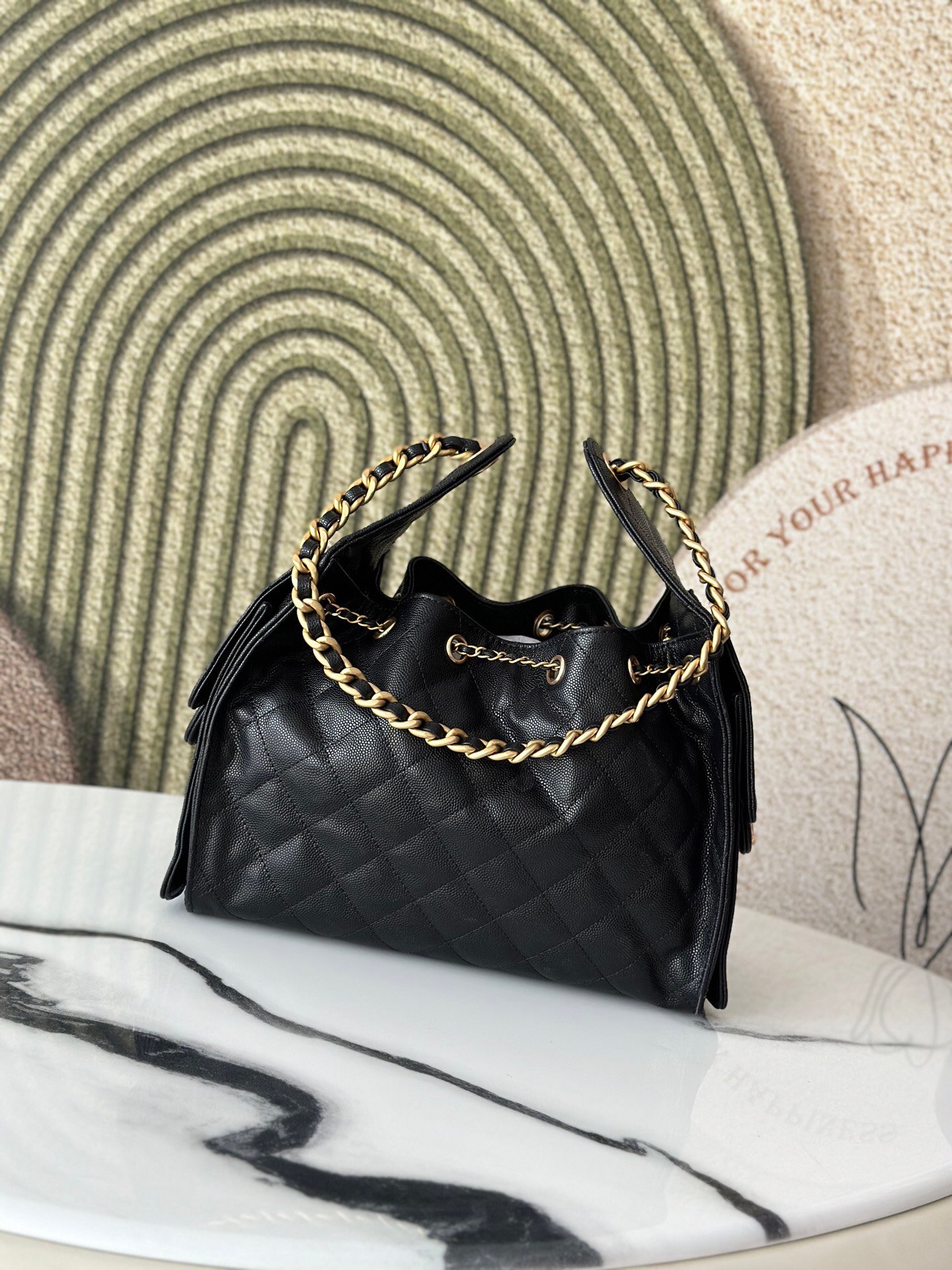 P790 25c ball pattern leather hip hop bag Chanel chanel hobo armpit bag hippie armpit bag small Retro Gold Coin Button Drawstring Bucket Bag + Diamond Pattern + Retro Black Gold Classic chain design, full of high-end feel! Essential for daily travel, Exquisite appearance and delicate texture, Suitable for both casual and formal occasions Style number AS5293 Size 30*26*14 9579086