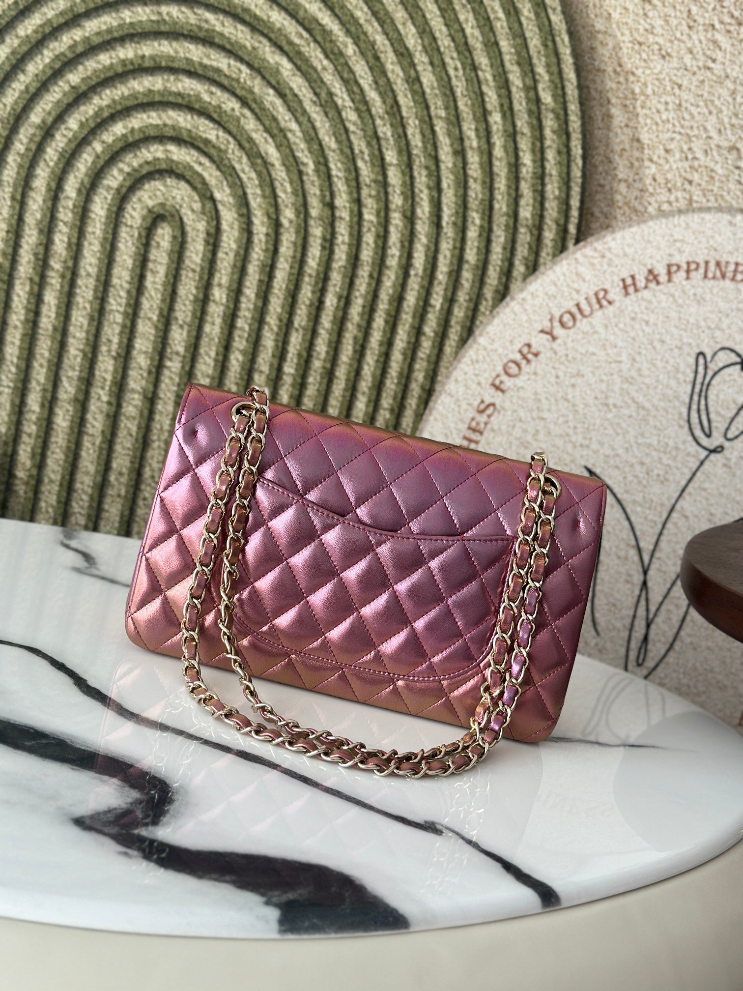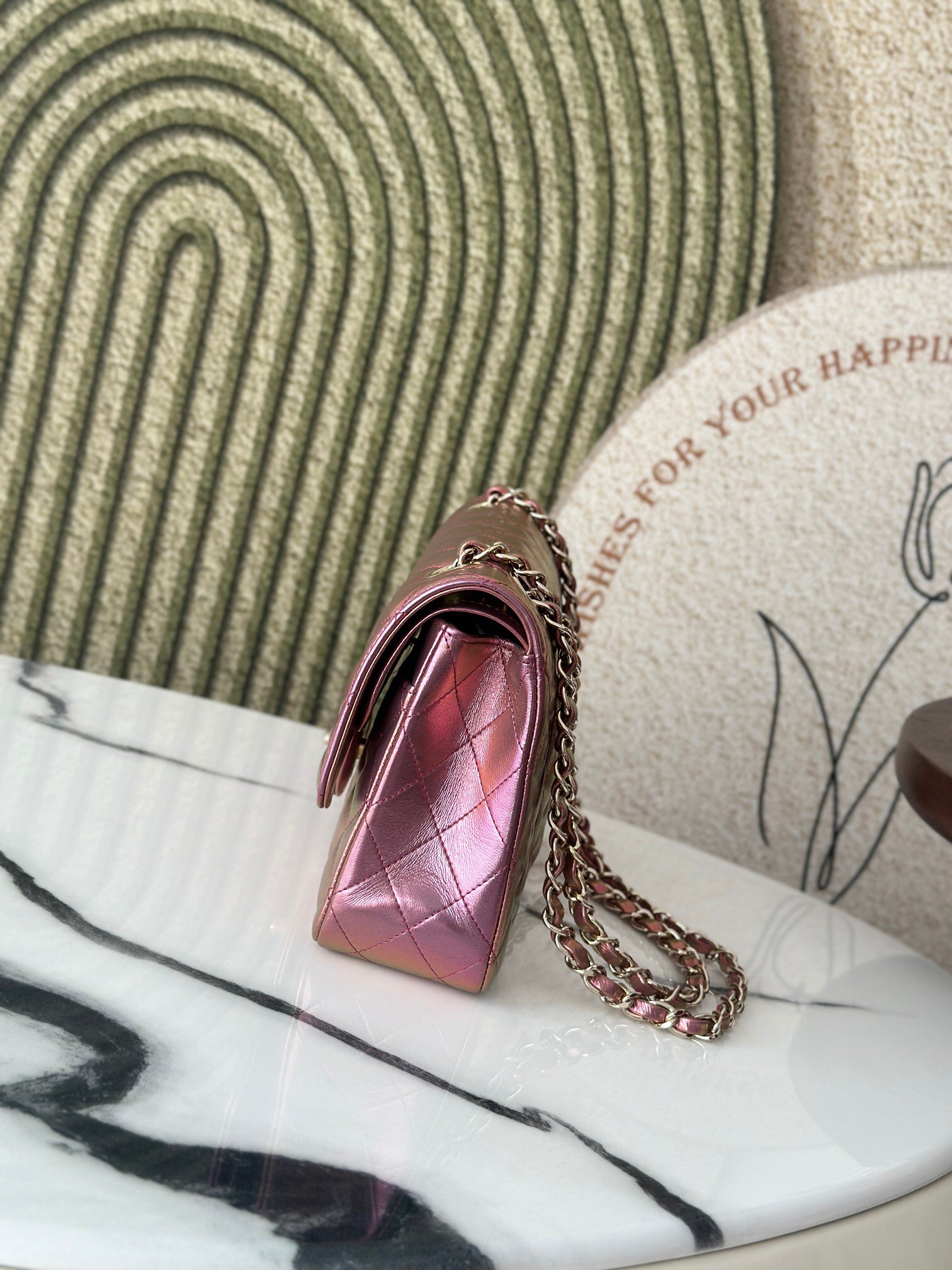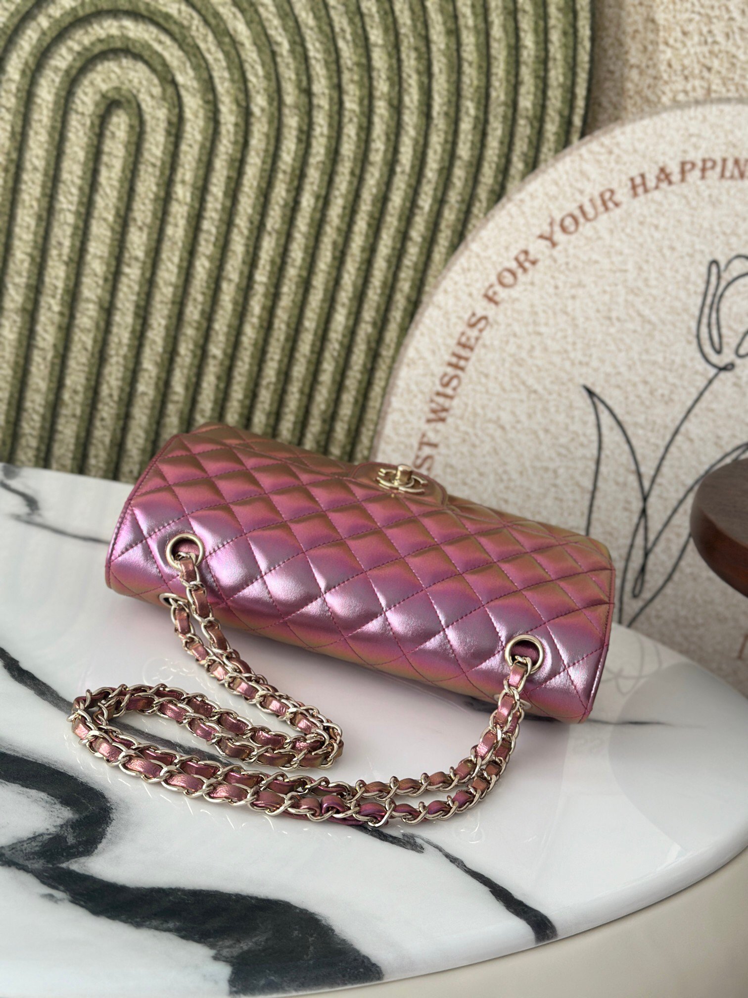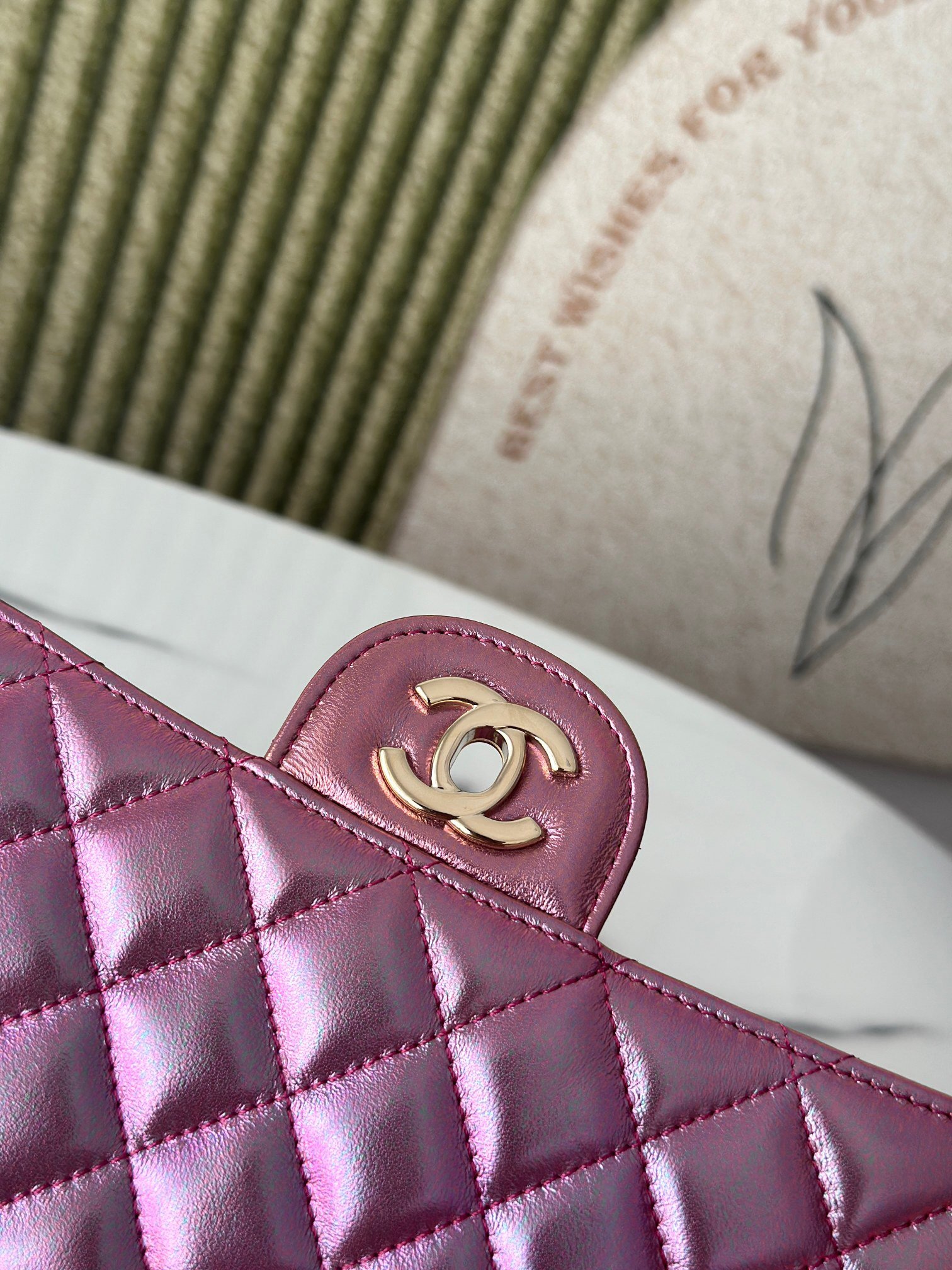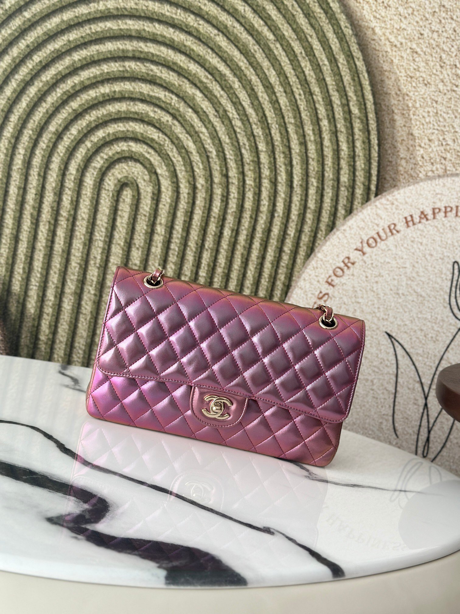 P930 spot classic model exclusive zp development Chane✨New Colorful Purple CF Chain Flip Bag Classic pearlescent new color, twist closure Equipped with a sliding chain, it can be worn on one shoulder or cross-body at will. The whole bag looks very exquisite, fashionable and versatile This pink gold color is really eye-catching🤩It feels like a girl and a lady. Paired with light gold hardware, it looks like a queen. Size 25.5*15*6cm. No. A1112 colorful purple 1093088