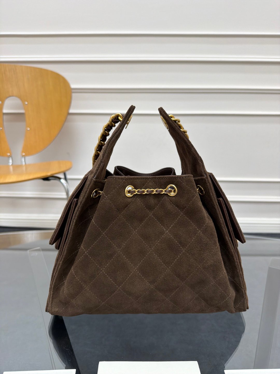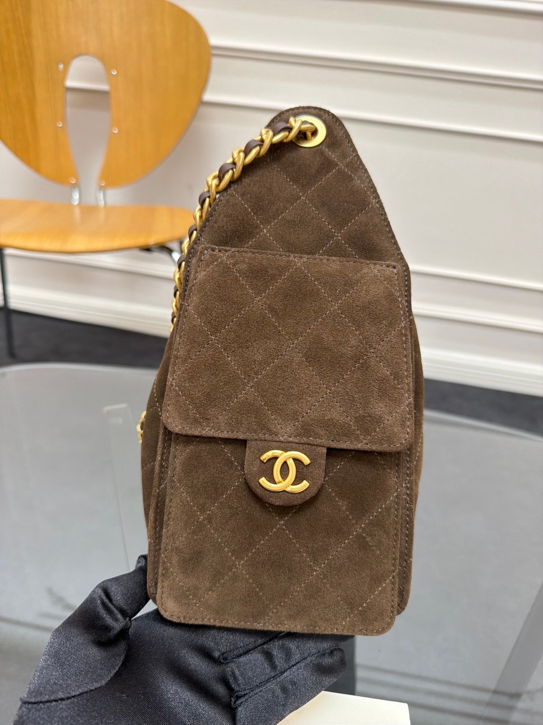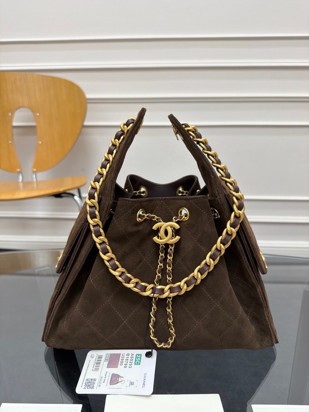 The latest brown suede series Chane1🔯25C show style HOBO BAG hippie bag AS5293 special design style suede with gold metal, a perfect match. The upper body feels better than the picture, the capacity is very touching, there are double C logos on the left and right sides, elegant and retro, a model of Parisian heroine, I like it very much😘 Size: 30×26×14cm